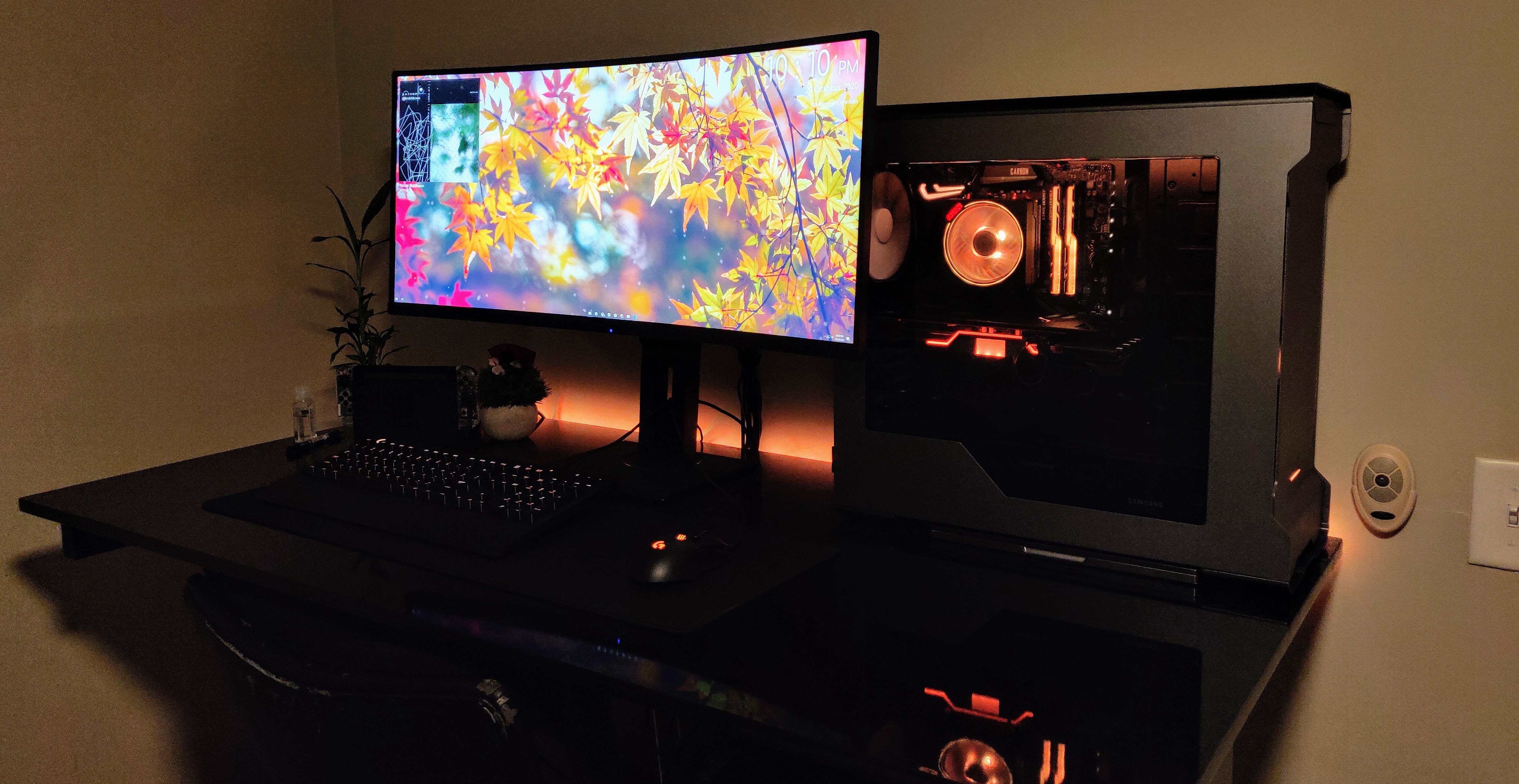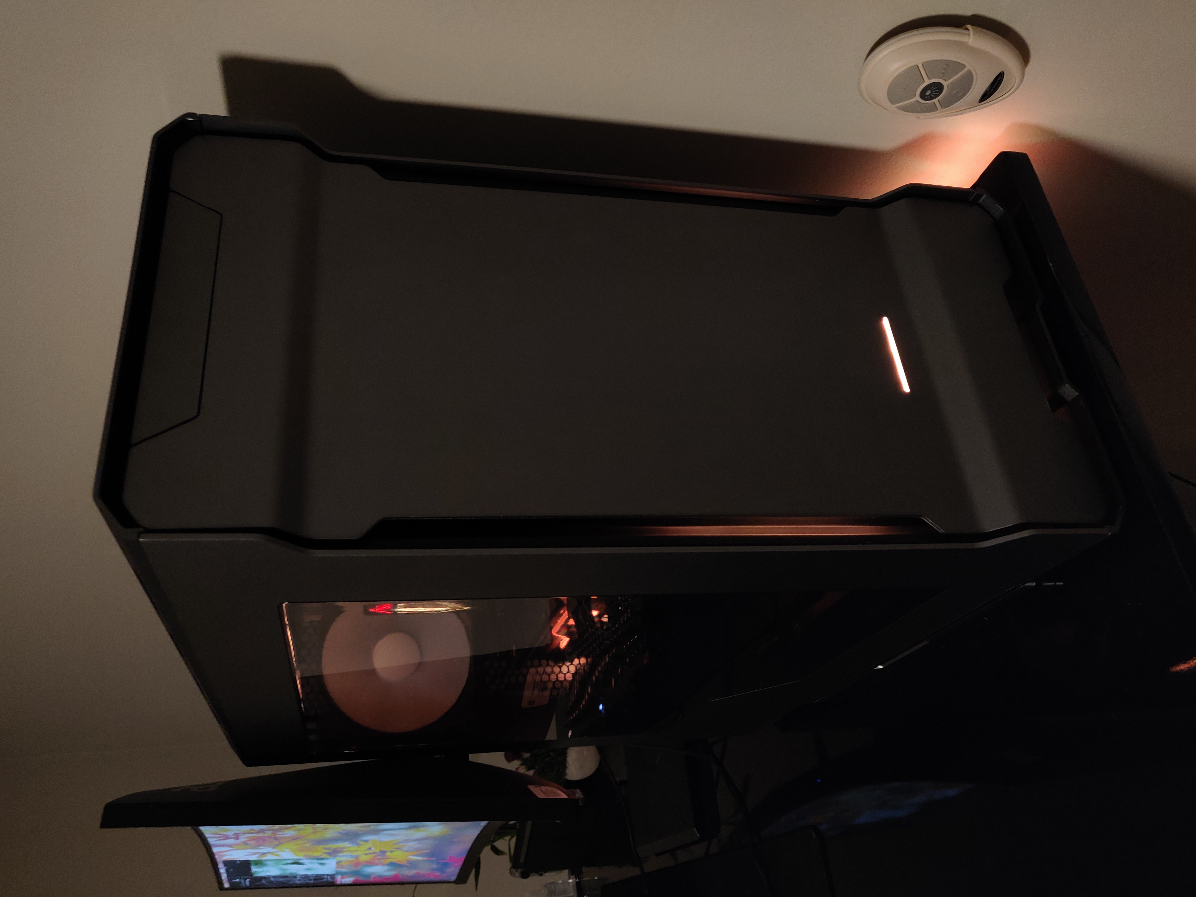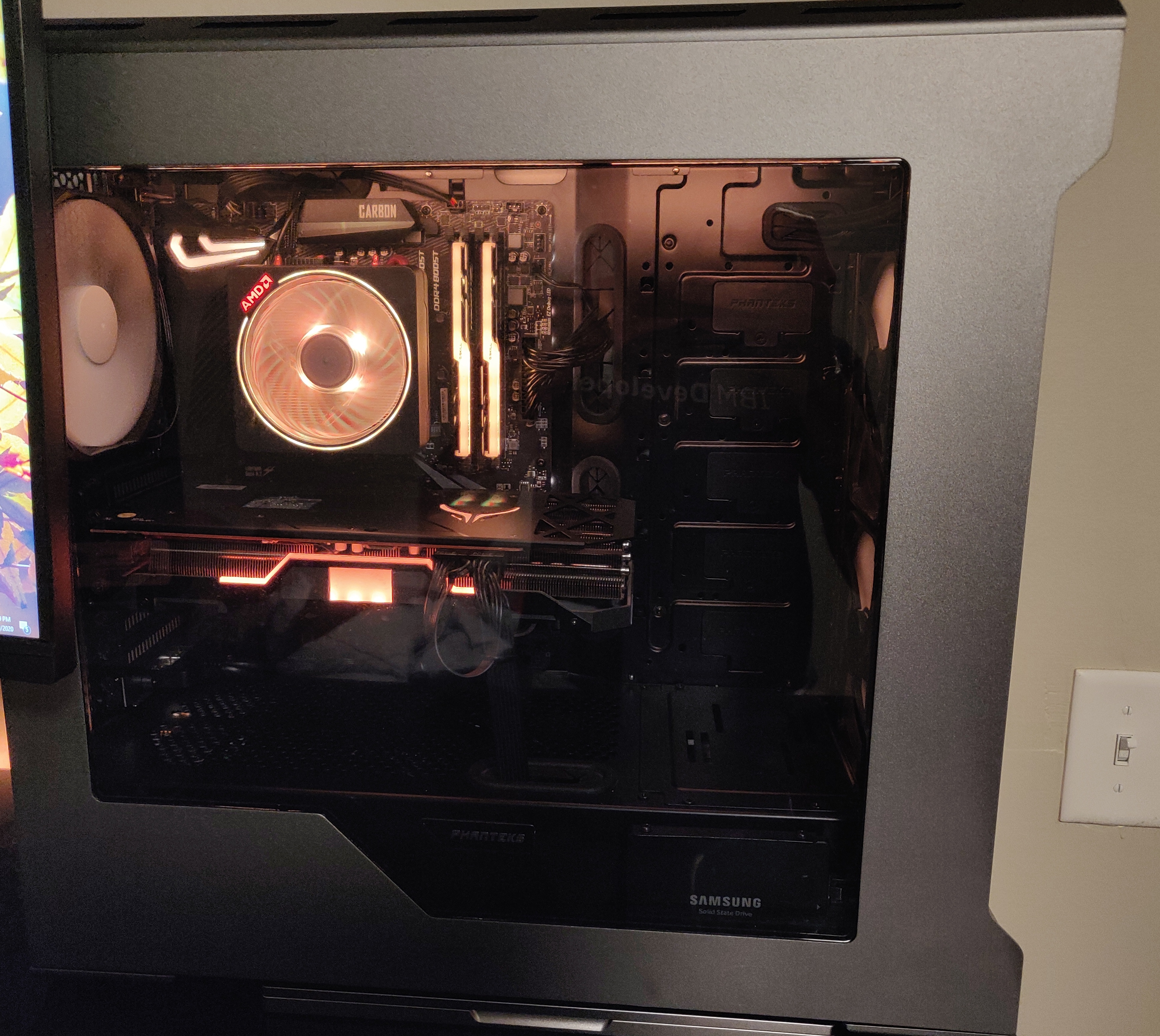 Here you can see the custom RGB lighting I set up in the front panel of my new case.